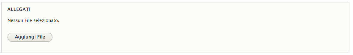 Per caricare un allegato, andare al box "Allegati" all'interno della pagina e cliccare su "Aggiungi file".