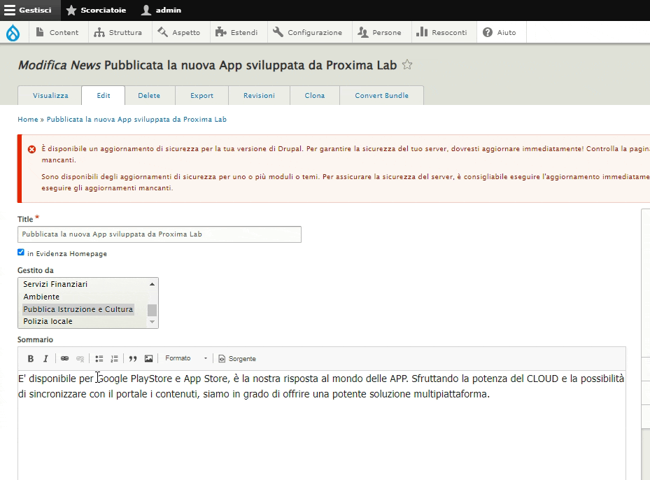 E' possibile aggiungere link anche all'interno dei testi generici.