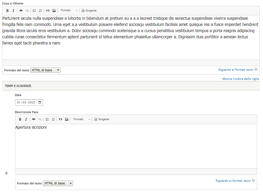 Nel caso si avessero allegati quali Moduli o Regolamenti NON vanno caricati in queste pagine, ma caricati nelle pagine apposite.